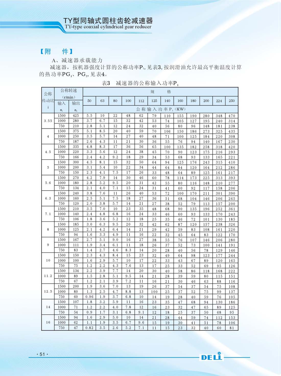 TY系列同軸式硬齒面齒輪減速器是理想的動力傳送裝置,它廣泛用于冶金、礦山、化工、紡織、儀器、能源、建材等行業(yè)。減速器的齒輪圓周速度不大于20m/s,允許正、反轉(zhuǎn)。使用于水平臥式安裝,前 后傾斜角不大于20。直聯(lián)電機為Y系列三相異步四級電動機,電機的安裝型式為B5或B35;工作環(huán)境溫度為0攝適度-40攝適度。 減速器的型號TY50/TY63/TY80/TY100/TY112/TY125/TY140/TY160/ TY180/TY200/TY224/TY250