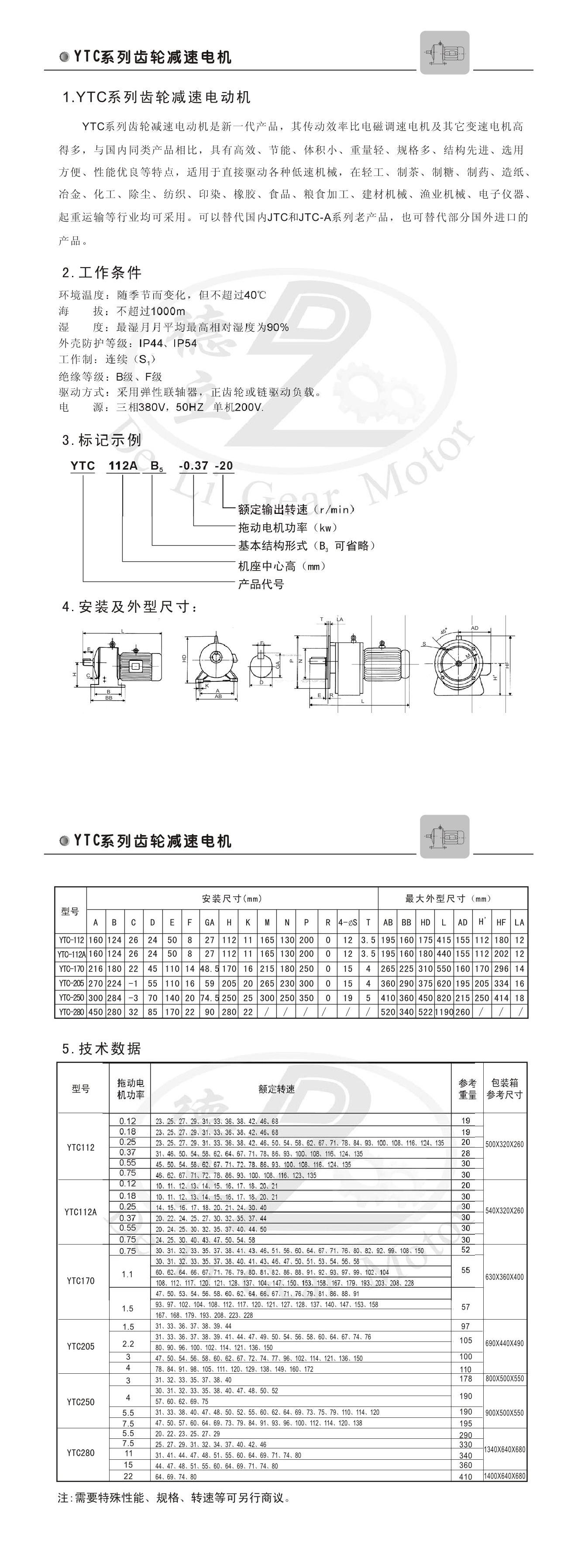 YTC系列齒輪減速電機(jī)